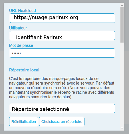 • Choisissez un répertoire de votre navigateur à synchroniser